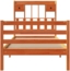 Das vidaXL Massivholzbett mit Regal in Wachsbraun bietet eine stilvolle und praktische Lösung für Ihr Schlafzimmer. Hergestellt aus massivem Kiefernholz, überzeugt es durch Stabilität und Langlebigkeit. Das integrierte Bücherregal sorgt für zusätzlichen Stauraum und Ordnung. Mit einem Lattenrost ausgestattet, unterstützt es Ihre Matratze optimal. Die Gesamtmaße betragen 228,5 x 106 x 110 cm (L x B x H), während die passende Matratzengröße 100 x 200 cm (B x L) ist.