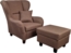 Ohrensessel mit Hocker Landhaus Polster-, TV-, Lesesessel Strukturstoff in Braun Bild 1