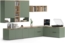 Die Wido - Wohnwand in Grün/Sonoma vereint modernes Design mit praktischem Stauraum. Das 9-teilige Set besteht aus 2 Hängeschränken, 4 Kommodenschränken, 2 Wandregalen und einer Eckkommode. Nutzen Sie die offenen und geschlossenen Fächer, um Ihre Lieblingsstücke stilvoll zu präsentieren. Ideal für entspannte Fernsehabende oder als dekorativer Blickfang in Ihrem Wohnraum.