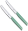 Die Victorinox Tafelmesser im 2er-Set sind ideal für den Einsatz am Esstisch und in der Küche. Mit ihrem Wellenschliff schneiden sie mühelos durch die Haut von Tomaten und anderem weichen Obst oder Gemüse, ohne das Fruchtfleisch zu zerdrücken. Die rostfreien Klingen garantieren Langlebigkeit und Glanz, während die mint-grüne Farbgebung der Griffe einen modernen Akzent setzt. Swiss Made Qualität sorgt für Präzision und außergewöhnliche Schneidleistung.