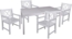 Die Tischgruppe MALMÖ ist eine elegante und praktische Wahl für Ihren Outdoor-Bereich. Der Tisch MALMÖ besteht aus 100% zertifiziertem Eukalyptus Grandis-Holz (FSC 100%) und ist in einem attraktiven white washed Finish gestaltet. Mit seiner großzügigen rechteckigen Tischplatte bietet er ausreichend Platz für Mahlzeiten und gesellige Zusammenkünfte im Freien. Die Gruppe umfasst auch vier Armstühle MALMÖ, die ebenfalls aus Eukalyptusholz gefertigt und im gleichen white washed Finish gestaltet sind. Diese Stühle bieten Komfort und Stil und sind perfekt auf den Tisch abgestimmt. Dieses Set ist ideal für gesellige Stunden im Freien mit Familie und Freunden. Die Tischgruppe MALMÖ vereint hochwertige Materialien und ansprechendes Design, um Ihnen ein stilvolles und funktionales Outdoor-Möbelset zu bieten. Genießen Sie Ihre Mahlzeiten und entspannten Momente im Freien mit diesem erstklassigen Ensemble. - Maße ca.: Tisch: L165xB80xH75cm, Sessel: L58xB59xH89cm- Farbe: white washed- Herstellungsland: Vietnam- Material: Eukalyptus Grandis, FSC 100%- Versand erfolgt per Spedition frei Bordsteinkante- Marke: Garden Pleasure- Lieferumfang: 1 × Tisch 985058 | 4 × Sessel 985073