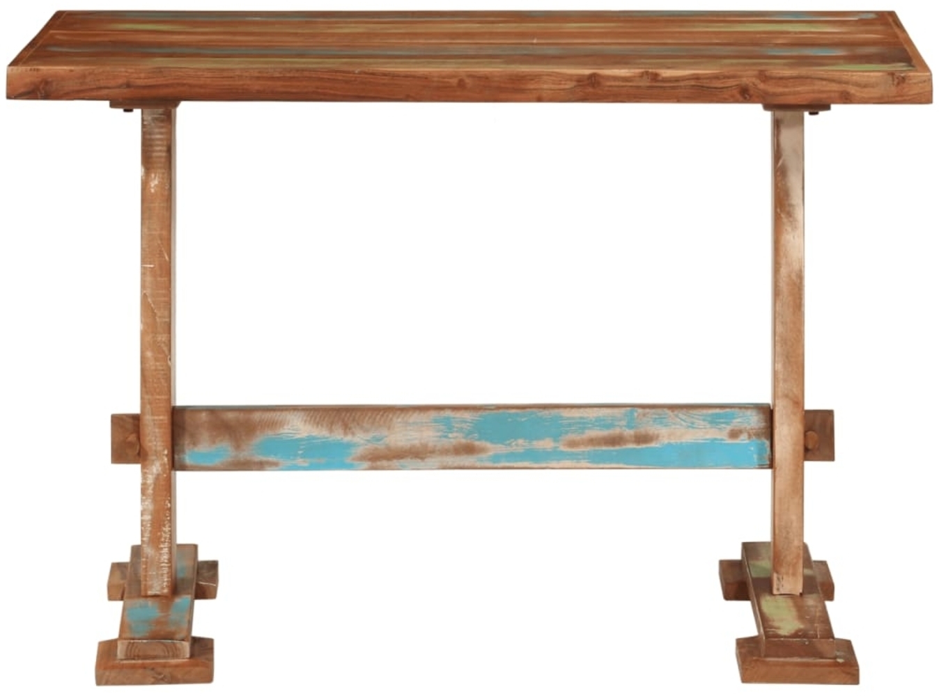 Dieser Esstisch aus massivem Altholz ist eine stilvolle Ergänzung für Ihr Esszimmer oder Ihre Küche. Mit den Abmessungen 110 x 55 x 78 cm bietet er ausreichend Platz für Speisen und Getränke. Die robuste Tischplatte und die stabilen Holzbeine sorgen für eine natürliche Optik und harmonieren mit jeder Inneneinrichtung. Jedes Stück ist handgefertigt und einzigartig, da die Farben variieren können.