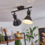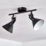 Moderne Deckenlampe „Pratomagno“ aus schwarzem Metall im Retro/Vintage-Design. Diese 2-flammige Leuchte mit verstellbaren Strahlern bietet eine maximale Höhe von 23,5 cm und eine Länge von 30 cm. Die Schirme sind dreh- und schwenkbar und erzeugen durch ihre Schlitze einen ansprechenden Lichteffekt an der Decke. Geeignet für LED-Leuchtmittel (2 x E14, max. 40 Watt, exklusive Leuchtmittel).