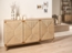 Schlankes und geräumiges Sideboard BONDI in Hellbraun, das modernen Stil mit Boho-Charme vereint. Die Fronten aus geflochtenem Papierseil und das Gestell aus massiven Kiefernholzbeinen sorgen für eine warme Ausstrahlung. Mit einem Korpus aus Holzwerkstoff ist das Sideboard pflegeleicht und bietet durch die praktischen Push-to-Open-Türen ausreichend Stauraum für Bücher und Alltagsutensilien.