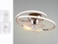 LED Deckenleuchte in Silber Chrom mit integriertem Ventilator, Ø 50 cm. Diese innovative Leuchte vereint Beleuchtung und Raumbelüftung in einem Produkt. Sie ist stufenlos dimmbar und ermöglicht eine Anpassung der Lichttemperatur von 2700 Kelvin (warmweiß) bis 6500 Kelvin (tageslichtweiß). Mit einer Leistung von 38 Watt und 4400 Lumen sorgt sie für eine effiziente Ausleuchtung. Der Ventilator bietet 3 Geschwindigkeitsstufen und eine Oszillationsfunktion für optimalen Luftstrom.