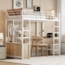 Dieses moderne Hochbett mit den Maßen 90x200 cm bietet eine clevere Kombination aus Schlaf-, Arbeits- und Stauraum. Der stabile Metallrahmen in Weiß und die langlebigen MDF-Elemente garantieren hohe Stabilität und Langlebigkeit. Ausgestattet mit einem integrierten Schreibtisch, USB- und Steckdosenanschlüssen sowie Regalfächern, ist es ideal für kleine Räume. Das umlaufende Geländer und die feste Leiter sorgen für Sicherheit und einfachen Zugang.