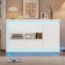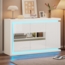 Merax Hochglanz-Sideboard ist eine moderne Kommode mit einer Breite von 140 cm, die sich ideal für Wohnzimmer, Flure und Büros eignet. Mit 4 Fächern und 3 Türen aus gehärtetem Glas bietet sie nicht nur praktischen Stauraum, sondern auch eine stilvolle Atmosphäre durch die per Fernbedienung gesteuerten LED-Lichtstreifen. Das hochwertige Hochglanzdesign und die verstellbaren Trennwände sorgen für eine flexible Nutzung und ansprechende Präsentation Ihrer Sammlungen.