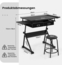 Höhenverstellbarer Zeichentisch mit Hocker & Neigbarer Tischplatte & 2 Schubladen Schwarz