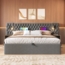 Polsterbett 180x200 cm Grau mit Kopfteil, Nachttischen, LED-Leselampe & Stauraum, hydraulisch verstellbar, USB Type-C Ladefunktion