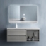 Dieses Badmöbel-Set vereint zeitloses Design mit hoher Funktionalität. Der Unterschrank aus MDF-Platte mit Melaminbeschichtung bietet mit seinen zwei Soft-Close-Auszügen viel Stauraum für Ihre Badutensilien. Das Waschbecken aus Mineralguss ist aus einem Stück gefertigt und sorgt für eine elegante Optik. Mit einer Breite von 120 cm passt es ideal in jedes Badezimmer.