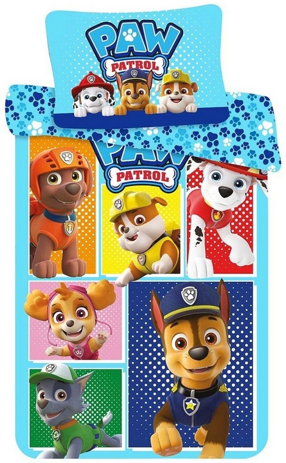 Paw Patrol Fans, aufgepasst! Es gibt jetzt die coole Bettwäsche mit Paw Patrol auf dem die sechs bekannten Hunden abgebildet sind. Das Set besteht aus einem Kopfkissen-Bezug 40x60 cm und einem Decken-Bezug 100x135 cm.
