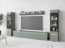 Die Wohnwand Doppo II in der Farbe Nebelgrün bietet eine moderne und stilvolle Lösung für Ihr Wohnzimmer. Mit einer weißen LED-Beleuchtung (nicht im Set enthalten) und einer Kombination aus Laminatplatten und gehärtetem Glas, vereint sie Funktionalität und Ästhetik. Die Möbelstücke sind in verschiedenen Abmessungen erhältlich und bieten ausreichend Stauraum für Ihre Bedürfnisse.
