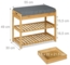 Die Schuhbank mit Polster und Schublade 10050381 ist die ideale Lösung für Ihre Diele, Ihr Wohn- oder Schlafzimmer. Sie bietet nicht nur einen bequemen Sitzplatz zum An- und Ausziehen der Schuhe, sondern überzeugt auch durch ihr modernes Design. Die graue Sitzpolsterung aus Leinen und das stabile Bambusgestell sorgen für einen ansprechenden Materialmix. Auf den zwei Ablagen finden 4 bis 6 Paar Schuhe Platz, während die Schublade zusätzlichen Stauraum für Kleinigkeiten bietet.
