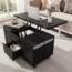 Der VOWNER Couchtisch ist ein anhebbarer Multifunktionstisch, der sich ideal für Wohnzimmer, Essbereich und Home-Office eignet. Mit einem Grundmaß von 105 x 54 cm und einer erweiterten Fläche von 105 x 108 cm bietet er vielseitige Nutzungsmöglichkeiten. Der Tisch ist höhenverstellbar und verfügt über einen versteckten Stauraum sowie vier integrierte Hocker mit Staufächern. Die Tragfähigkeit beträgt 250 kg und der Tisch ist aus Spanplatte mit einem Stahl-Hydraulikmechanismus gefertigt.