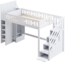 Hochbett HAUSS SPOLE 90x200 cm in Weiß bietet eine harmonische Kombination aus Kiefernholz und MDF. Mit multifunktionalen Regalen, einer klappbaren Stauschublade und einem einzigartigen Liebesgeländer sorgt es für Sicherheit und Ordnung im Kinderzimmer. Das innovative Design der Aufbewahrungsleiter maximiert den Raum und schafft eine angenehme Atmosphäre.