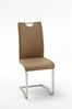 Modern und edel präsentiert sich der Schwingstuhl Köln. Mit seinem Design vom verchromten Flachrohrgestell und dem attraktiven cappuccinofarbenen Kunstlederbezug lässt er sich nahezu mit jedem bereits vorhandenen Möbelstück kombinieren. Ausgestattet mit einem Griff in der Lehne ist es ein Leichtes, den Freischwinger bei Bedarf in eine andere Position zu bringen. Nehmen Sie eine entspannte Sitzhaltung ein und genießen Sie den bequemen Sitzkomfort, den der Schwingstuhl Köln Ihnen bietet. Produktdetails: Bezug aus Kunstleder Stoffzusammensetzung: 100% Polyurethan Gestell aus Metall, Flachrohr, verchromt mit praktischen Griff in der Rückenlehne max. Belastbarkeit: 120kg ca. Maße: Breite: 43cm Tiefe: 57cm Höhe: 100cm Sitztiefe: 46cm Sitzhöhe: 47cm Lieferumfang: 1x4er Set Schwingstuhl Köln - Kunstleder Cappuccino Bitte beachten Sie, dass dieser Artikel zerlegt geliefert wird. Durch die übersichtliche Aufbauanleitung ist es jedoch ein Leichtes ihn zu montieren. Eventuell abgebildete Dekorationsartikel, Beleuchtungen, Hi Fi-Geräte oder ähnliches sind nicht im Lieferumfang enthalten.