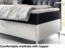 Unten: Bettkasten mit Federmechanismus und Textilgriffe, Holzrahmen mit Möbelplatte, HDF und Schaumstoff