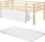 Vente-unique - Halbhohes Bett 90x190 cm – Mit Stauraum + Matratze – Kiefer & MDF – Natur/Weiß – LANIORI