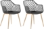 Moderner Esszimmerstuhl im eleganten Schwarz im 2er Set NASHUA. Die Sitzflächen und Rückenlehnen aus pflegeleichtem Kunststoff bieten hohen Komfort und behalten ihren frischen Look. Das ansprechende Rautendesign und die Metallbeine in Holzoptik sorgen für Stabilität und Stil. Ideal für Küche, Esszimmer oder Bar.