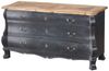 Elegante und massive Kommode aus exotischem Holz in Schwarz. Die Dekoria Kommode Lawrence 160 x 50 x 85 cm bietet mit drei Schubladen ausreichend Stauraum und dekorative Beschläge. Abgerundete Kanten und effektvolle Rillen auf den Beinen verleihen ihr einen besonderen Charme. Ideal, um Dinge zu verstauen und Accessoires stilvoll zur Schau zu stellen.