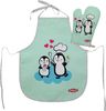 Die Heless Kinderschürze mit Topfhandschuh im Pinguin-Design schützt die Kleidung kleiner Meisterbäcker und Künstler vor Flecken. Das mintfarbene Material mit schwarz-weiß gesprenkelter Borte ist bei Jungen und Mädchen beliebt. Der niedliche Pinguin-Aufdruck sorgt für gute Laune. Der mitgelieferte Topfhandschuh schützt kleine Hände vor Hitze. Die Schürze aus Baumwolle ist bei 30 °C waschbar und lässt sich durch Bänder im Nacken und Rücken individuell anpassen.