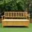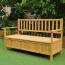 Die Truhenbank ist eine stilvolle und praktische Ergänzung für Ihren Außenbereich. Mit großzügigen Abmessungen von 145 x 61 x 85 cm bietet sie Platz für bis zu drei Personen. Das große Staufach unter der Sitzfläche ermöglicht eine ordentliche Aufbewahrung von Kissen, Decken oder Gartenzubehör. Ihre robuste, wetterbeständige Bauweise sorgt dafür, dass die Bank über viele Saisons hinweg ihre Schönheit behält. Die Montage ist unkompliziert und die Pflege einfach.