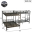 Produktbasis und Größenunterschied:Es handelt sich um ein schwarzes Eisen-Etagenbett mit Betten in unterschiedlichen Größen – links Doppelbett, rechts Einzelbett (90x200cm & 140x200cm).