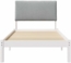 vidaXL Bettgestell in Weiß und Hellgrau 90x190 cm aus massivem Kiefernholz vereint modernes Design mit Funktionalität. Das stabile Bettgestell mit einem gepolsterten Kopfteil bietet Komfort und passt zu verschiedenen Einrichtungsstilen. Die matte Oberfläche und der feste Lattenrost sorgen für eine ansprechende Optik und optimale Matratzenunterstützung.