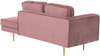 Moderne Chaiselongue aus rosa Samtstoff mit eleganter Näht-Umrandung. Die weiche Liegefläche und die zusätzlichen Kissen sorgen für höchsten Komfort. Mit stabilen, schlanken Metallbeinen bietet sie einen stilvollen, luftigen Look. Ideal für entspannte Stunden und ein elegantes Wohnambiente.