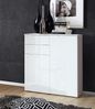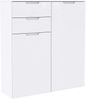 Besonderheiten: • Moderne Kommode in schlichtem Design • Front in stabilem MDF, Hochglanz weiß • Korpus in weiß Dekor • Oberboden in weiß Hochglanz • viel geschlossener Stauraum • Eingefräste Griffmulden • Einlegeböden höhenverstellbar • Metallscharniere • Schubkästen auf Metalllaufleisten • Pflegeleicht durch glatte Oberflächen, einfach feucht abwischen