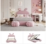MC Star Polsterbett Doppelbett, hydraulisches Bett Hasenohren mit einstellbarer (Hasenohren mit einstellbarer Helligkeit warmfarbenen Lichtstreifen, Stauraum unter dem Bett, zwei Aufbewahrungshockern)