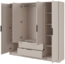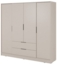 Der Kleiderschrank Sevia vereint modernes Design mit funktionalem Innenleben. Mit einer Höhe von 200 cm, einer Breite von 206 cm und einer Tiefe von 51 cm bietet er ausreichend Stauraum. Der Schrank verfügt über vier Türen, zwei geräumige Schubladen und verstellbare Einlegeböden, die eine individuelle Gestaltung ermöglichen. Hergestellt aus 16 mm starker, laminierter Spanplatte mit verstärkten ABS-Kanten, garantiert er Langlebigkeit und Widerstandsfähigkeit.