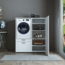 Eine platzsparende und praktische Schrankwand Kombination für Waschküchen mit 1x Waschmachinen überbauschrank und 1x Mehrzweckschrank. Ausziehplatten für Wäschekörbe und Aufbewahrung für Wasch und Putzmittel unter dem Waschmaschine und es hat eine optimale Höhe, die Ihnen die Arbeit für Ihre Wäschen erheblich erleichtert.