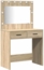 vidaXL Schminktisch Set mit Tür 3 pcs Sonoma-Eiche 78,5 x 41 x 135 cm 3334283 vereint modernes Design mit funktionalem Stauraum. Dieses elegante Set aus Holzwerkstoff bietet eine glatte Oberfläche und ist ideal für die tägliche Nutzung. Mit integrierter LED-Beleuchtung und ausreichend Platz für Kosmetika ist es die perfekte Ergänzung für Ihr Schlafzimmer.