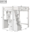 Flieks Hochbett ist ein funktionales Kinderbett mit einer Liegefläche von 90x200 cm. Es bietet zusätzlichen Stauraum und ist mit einer praktischen Treppe sowie einem integrierten Schreibtisch ausgestattet. Das Bett hat eine Bodenfreiheit von 143 cm und ist aus Kiefer, Sperrholz und MDF gefertigt. Es ist für Matratzen mit einer Stärke von 8-12 cm geeignet und hat eine maximale Belastbarkeit von 120 kg.