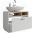 Der Waschbeckenunterschrank Beatrice in Weiß/Sonoma ist die perfekte Ergänzung für Ihr Badezimmer. Mit seinen kompakten Maßen von 80 x 84,5 x 35 cm (BxHxT) bietet er ausreichend Stauraum für Ihre Badutensilien. Die hochwertige Verarbeitung aus 16 mm Spanplatte und Kunststoff sorgt für Langlebigkeit und ein ansprechendes Design. Genießen Sie die Ordnung und Schönheit, die dieser Unterschrank in Ihr Bad bringt.