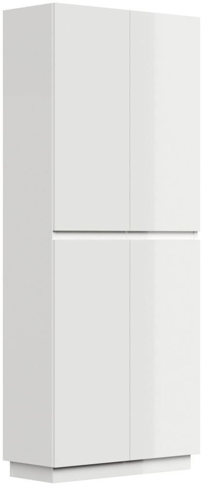Schuhschrank Pes mit 4 Türen in Weiß hochglanz bietet Platz für bis zu 36 Paar Schuhe. Hergestellt aus hochwertigen Materialien, überzeugt er durch eine stabile Konstruktion und eine edle, hochglänzende Oberfläche. Die Fronten sind 18-19 mm dick, während die Deckplatte und der Boden eine Dicke von 16 mm aufweisen. Der Schrank ist für die Standmontage vorgesehen und wird zerlegt geliefert, inklusive Aufbauanleitung.