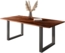 Exklusiver Esszimmertisch Polly, 220 x 100 cm, schwarze Resin-Adern, Akazienholz massiv + nussbaumfarben, U-Metallgestell Schwarz, Tischplatte 26 mm : Mit Epoxidharz – Die Tischplatte mit mehreren kleinen Epoxidharz-Adern zeichnet sich durch Eleganz und Schönheit aus. Die Maserungen und Farbnuancen sind so einzigartig, dass jeder Epoxidharz-Tisch ein absolutes Unikat ist. Kein Esszimmertisch gleicht dem anderen. Pflegeleicht – Die Oberfläche lässt sich leicht reinigen und pflegen. Verschmutzungen können mit einem mäßig feuchten Tuch problemlos entfernt werden. Regelmäßige Pflege erhält die natürliche Frische und die edle Ausstrahlung des Möbelstücks. Vielseitig einsetzbar – Der Küchentisch strahlt mit seiner rustikalen Art eine Gemütlichkeit aus, die Ihre Essecke warm und wohnlich wirken lässt. Durch die edlen Exposidharz-Adern entsteht eine edle Note in Ihrem Esszimmer. Der Tisch mit stilgerechten Stühlen kombiniert, kreiert ein großartiges Ensemble für Ihr Zuhause. Edles Design – Für unseren Esstisch wird hochwertiges Akazienholz mit schwarzem Epoxidharz verbunden. Die ausgefallenen Strukturen des Holzes kommen hierbei besonders gut zum Vorschein und verleihen Ihrem Zuhause einen lebendigen und trendigen Charakter. Natur Pur – Besonderes Highlight des Esszimmertisches sind die Tischkanten, die den natürlichen Formen eines Baumes entsprechen und direkt aus dem Baumstamm geschnitten wurden. Maßangaben : Gesamtlänge: 220 cm Gesamtbreite: ca. 100 cm Gesamthöhe: ca. 77 cm Materialstärke: ca. 26 mm :.Der Artikel wird zerlegt geliefert, mit ausführlicher Aufbauanleitung und Montagematerial.