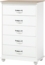 Dekorative, hohe Kommode im Landhausstil mit 5 geräumigen Schubladen. Diese wunderschöne Kommode in Weiß strahlt Gemütlichkeit und Charme aus und bietet viel Stauraum. Aus robustem Spanplattenmaterial gefertigt, ist sie vielseitig in allen Wohnbereichen einsetzbar. Ideal für Liebhaber traditioneller Möbel.