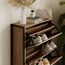 Der Vicco Schuhkipper Folda in Goldkraft Eiche und Schwarz ist die ideale Lösung für einen ordentlichen Flur. Mit seinen kompakten Maßen von 63 x 152,5 x 23,5 cm bietet er Platz für eine Vielzahl von Schuhen, von Sneakern bis zu Stiefeln. Die hochwertige Verarbeitung aus MDF und Stahl sorgt für Langlebigkeit und Stil. Verstellbare Fächer und höhenverstellbare Füße ermöglichen eine individuelle Anpassung.