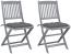 Diese modernen Gartenstühle aus massivem Akazienholz sind ideal für Mahlzeiten im Freien. Das Set umfasst 2 klappbare Stühle mit grau lasierter Oberfläche, die witterungsbeständig und langlebig sind. Die mitgelieferten Sitzkissen bieten zusätzlichen Komfort. Die Stühle lassen sich platzsparend zusammenklappen und sind leicht zu reinigen.