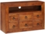 Das vidaXL Sideboard aus massivem Akazienholz bringt einen rustikalen Charme in Ihr Zuhause. Mit den Abmessungen 80 x 30 x 55 cm (L x B x H) bietet es vier geräumige Schubladen für praktischen Stauraum. Die Kombination aus tiefbraunem Holz und stilvollen schwarzen Akzenten sorgt für eine einladende Atmosphäre. Die stabile Konstruktion und die einfache Pflege machen dieses Sideboard zu einer idealen Ergänzung für Esszimmer, Wohnzimmer oder Flure.