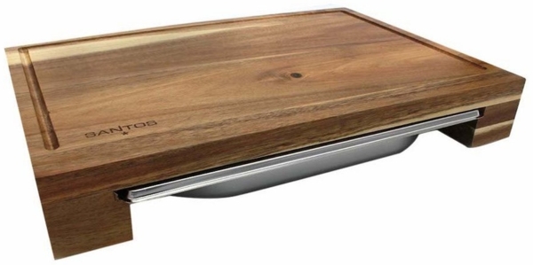 PROREGAL® Schneidebrett Schneidebrett Akazie mit Edelstahl-Auffangschale, Akazie Bild 1