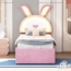 Dieses niedliche Kinderbett in Hasenform vereint Design, Komfort und Funktionalität. Es verfügt über ein ausziehbares Zusatzbett und drei praktische Schubladen für zusätzlichen Stauraum. Die farbwechselnden LED-Lichtleisten sind per Smartphone steuerbar und schaffen ein verspieltes Ambiente. Das gepolsterte Bett sorgt für Gemütlichkeit, während die stabile Konstruktion eine Belastbarkeit von bis zu 120 kg gewährleistet.
