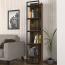 Das Bücherregal Kelvin vereint modernes Design mit Funktionalität. Mit einer Höhe von 180 cm, einer Breite von 64 cm und einer Tiefe von 35 cm bietet es ausreichend Platz für Ihre Bücher und Dekorationen. Der Rahmen und die Füße aus Metall sorgen für Stabilität, während die hochwertige, melaminbeschichtete Platte in Walnuss-Optik einen eleganten Akzent setzt.