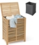 Unser hochwertiger Wäschekorb aus natürlichem Bambus bietet mit einem Volumen von 80 L ausreichend Platz für Kleidung, Handtücher oder Spielzeug. Die stabile Struktur und die Belastbarkeit von bis zu 25 kg garantieren eine dauerhafte Nutzung. Mit seitlichen Griffen lässt sich der Korb leicht bewegen, während das Lamellendesign für eine optimale Luftzirkulation sorgt. Die Reinigung erfolgt unkompliziert durch einfaches Abwischen.