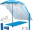 Genießen Sie mit dem 4smile Sonnenschirm 6er-Set in Blau optimalen Sonnenschutz am Strand. Der Schirm hat einen Durchmesser von 180 cm und bietet mit seinem UV50+-Schutz hervorragenden Schutz vor Sonnenstrahlen. Das Set umfasst zwei bequeme Strandliegen, eine sandfreie Stranddecke (1,5x2 m), einen stabilen Schirmständer mit Erdspieß sowie nützliches Zubehör wie Haken und Seile.