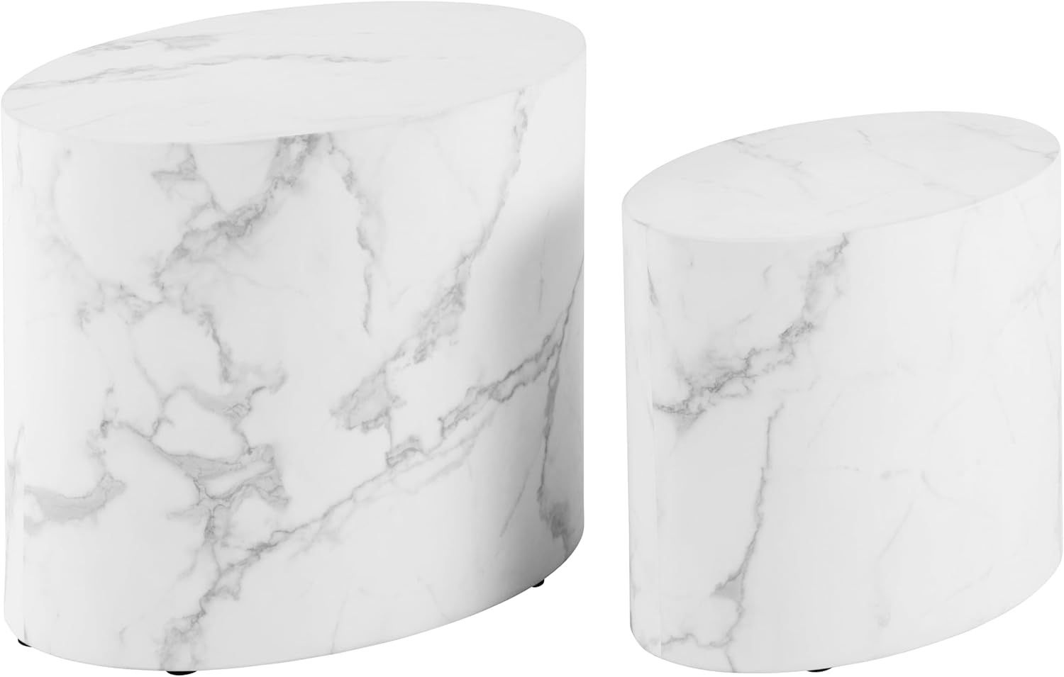 Der AC Design Furniture Rico Couchtisch in Weißer Marmoroptik ist ein praktisches 2er Set ovaler Beistelltische, ideal für Ihr Wohnzimmer. Mit den Maßen von 48 x 40 x 33 cm und 40 x 33 x 24,5 cm sind sie platzsparend und vielseitig einsetzbar. Die Tische bestehen aus leichtem Holzwerkstoff und verfügen über eine strapazierfähige Papieroberfläche in Marmoroptik, die ihnen eine elegante Ausstrahlung verleiht.