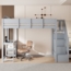 Graues Hochbett 90x200 cm Mit Stauraumtreppe Und Ablageregal Kinderhochbett Aus Massivkiefer Sicherheitsbett Mit Schutzgeländer Platzsparendes Etagenbett Jugendzimmer Stauraum Lösung