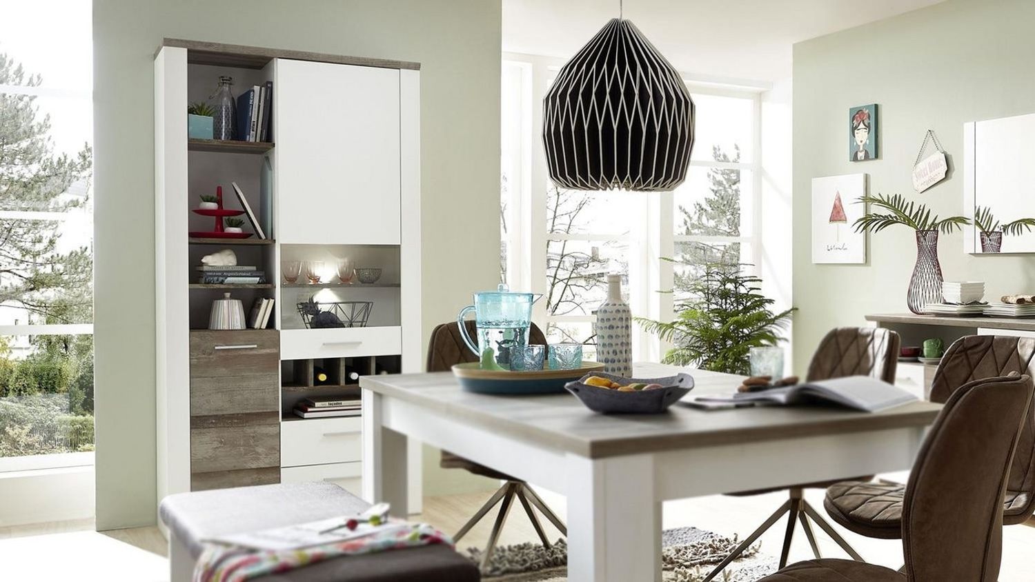 Vitrine MATEO Diese schöne Standvitrine MATEO hat sehr viel zu bieten. Neben einer harmonischen Optik in weiß und Driftwood, besticht der Buffetschrank im Wohn- oder Speisezimmer durch seinen großen Stauraum. In Fächern, Schubkästen und hinter zwei Türen finden sowohl praktische Utensilien, als auch dekorative Objekte problemlos Platz. Diese kommen dank einer schönen LED-Beleuchtung besonders gut zur Geltung.